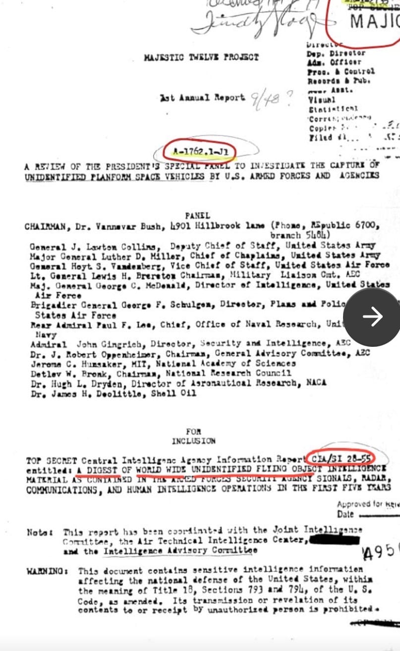 At the bottom of this article, you will find documents straight from the CIA website concerning MJ-12—the men who first dealt with the phenomenon and decided to keep it a secret in the 1940s.